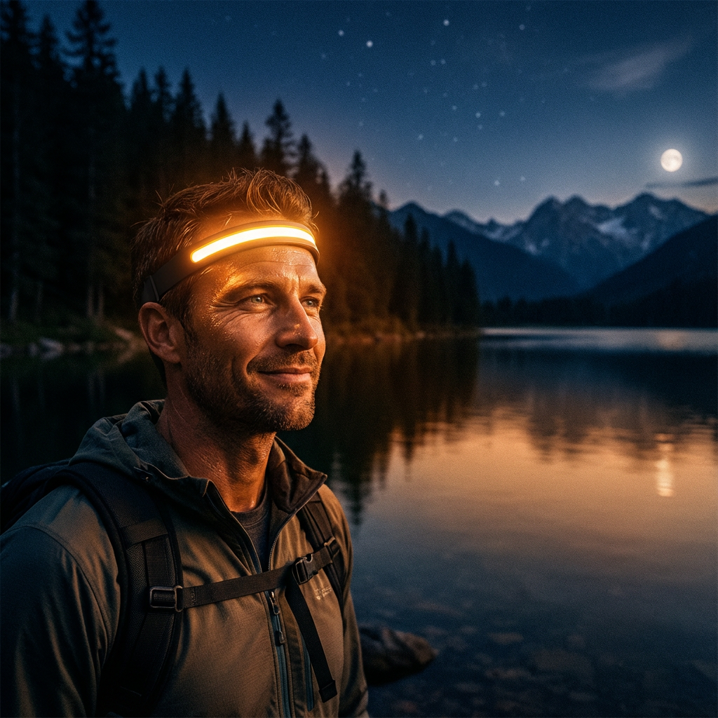 Nous avons conçu la LumaGuard™ pour qu'elle se fasse oublier. Contrairement aux lampes frontales classiques qui pèsent sur le front et rebondissent quand vous courez, celle-ci ne pèse que 68g. Son design souple en silicone épouse votre tête sans point de pression. Beaucoup d'utilisateurs oublient même qu'ils la portent.